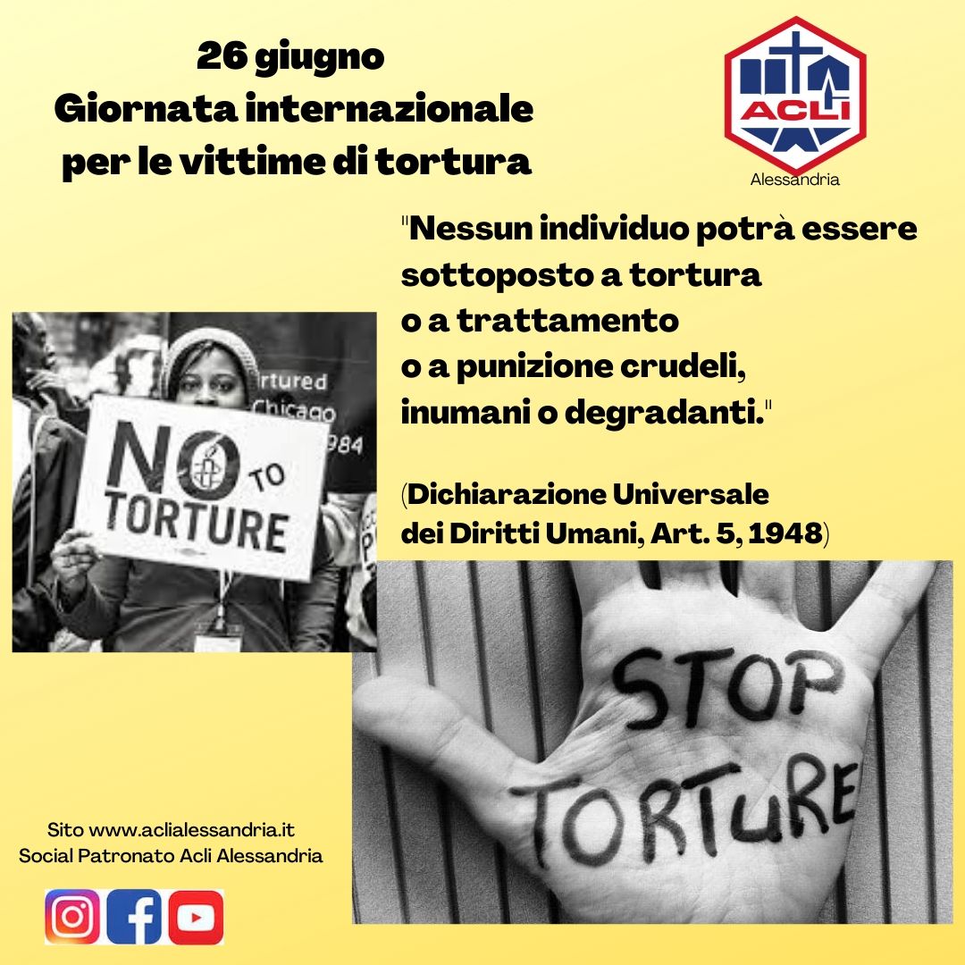 Oggi è la Giornata internazionale per le vittime di tortura. Dobbiamo far si che non sia solo il 26 giugno ma che tutti i giorni questa Giornata e che tutti i giorni si attui l’Articolo 5 della Dichiarazione Universale dei Diritti Umani del 1948 ovvero: “Nessun individuo potrà essere sottoposto a tortura o a trattamento o a punizione crudeli, inumani o degradanti”.