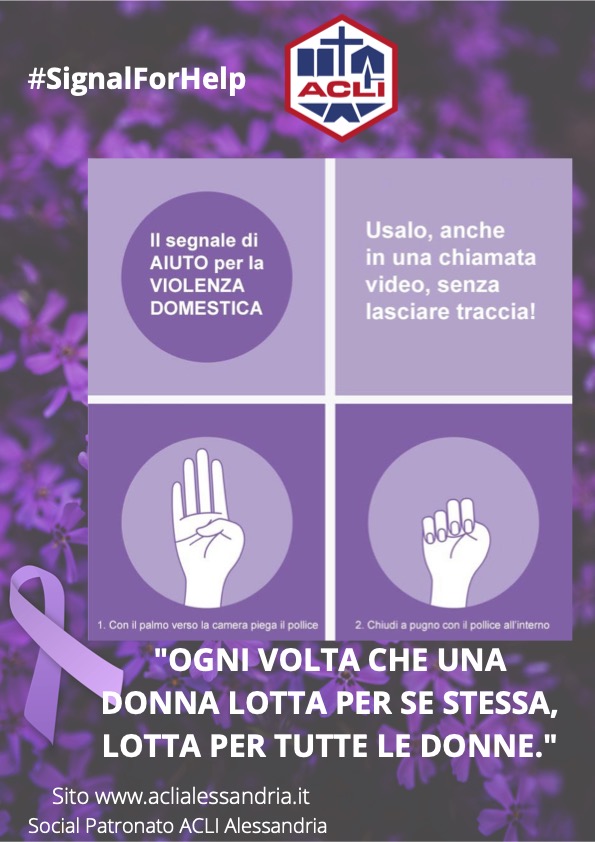 Le ACLI provincia Alessandria aderiscono alla campagna #SignalForHelp sulla richiesta di intervento contro la violenza domestica, tramite un semplice gesto della mano atto a richiamare l’attenzione senza dire nessuna parola.