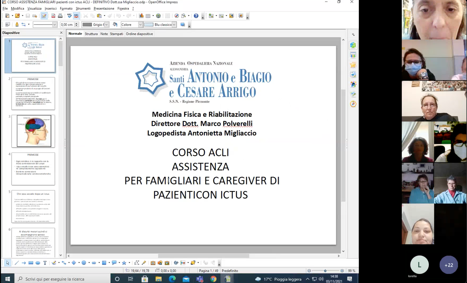 Ieri, mercoledì 3 novembre si è svolta online la terza lezione del corso per Assistenti Familiari e Caregiver su “Assistenza al paziente con ictus”. L’incontro si è aperto con l’intervento di 𝗠𝗮𝗿𝗶𝗮𝗻𝗼 𝗔𝗺𝗶𝗰𝗼, Direttore del Patronato ACLI e Amministratore del Sistema delle ACLI di Alessandria, ringraziamo molto per la partecipazione la logopedista Antonietta Migliaccio dell’Ospedale Civile e Ospedale Borsalino di Alessandria per aver spiegato in maniera semplice e con esempi pratici le azioni corrette da fare per aiutare nella comunicazione e nella deglutizione una persona affetta da ictus. Ringraziamo inoltre l’Ospedale Civile di Alessandria e l’Ospedale Borsalino di Alessandria per la disponibilità e collaborazione.