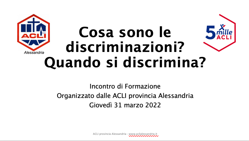 Oggi è stata una giornata di approfondimento per le ACLI aps, il Patronato ACLI e il CAF ACLI della provincia di Alessandria. Al mattino abbiamo affrontato il tema delle discriminazioni (cosa sono, come e quando segnalarle all’ufficio preposto), il tema della Comunicazione (come si comunica, come ci si pone con il pubblico etc.) e al pomeriggio un momento di organizzazione interna del Sistema ACLI. Ringraziamo la dottoressa Maria Lisa Priarone, referente per il Nodo provinciale contro le discriminazioni, e Carla Cattaneo, già Presidente delle ACLI di Alessandria e membro del Consiglio Provinciale, per averci accompagnato in questo percorso.