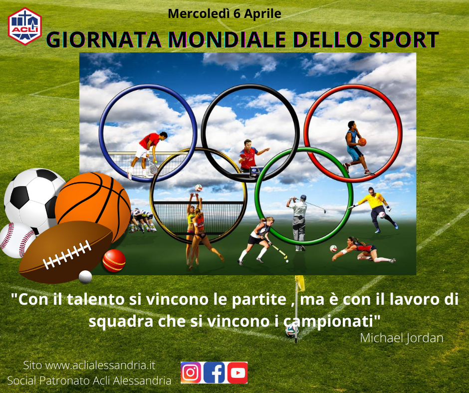 Come ACLI della provincia di Alessandria ci teniamo a ricordare la Giornata mondiale dello Sport in quanto fu istituita per diffondere il valore educativo dello sport per la società civile: unire le persone e promuovere una cultura di pace, favorendo l’integrazione sociale e lo sviluppo economico.