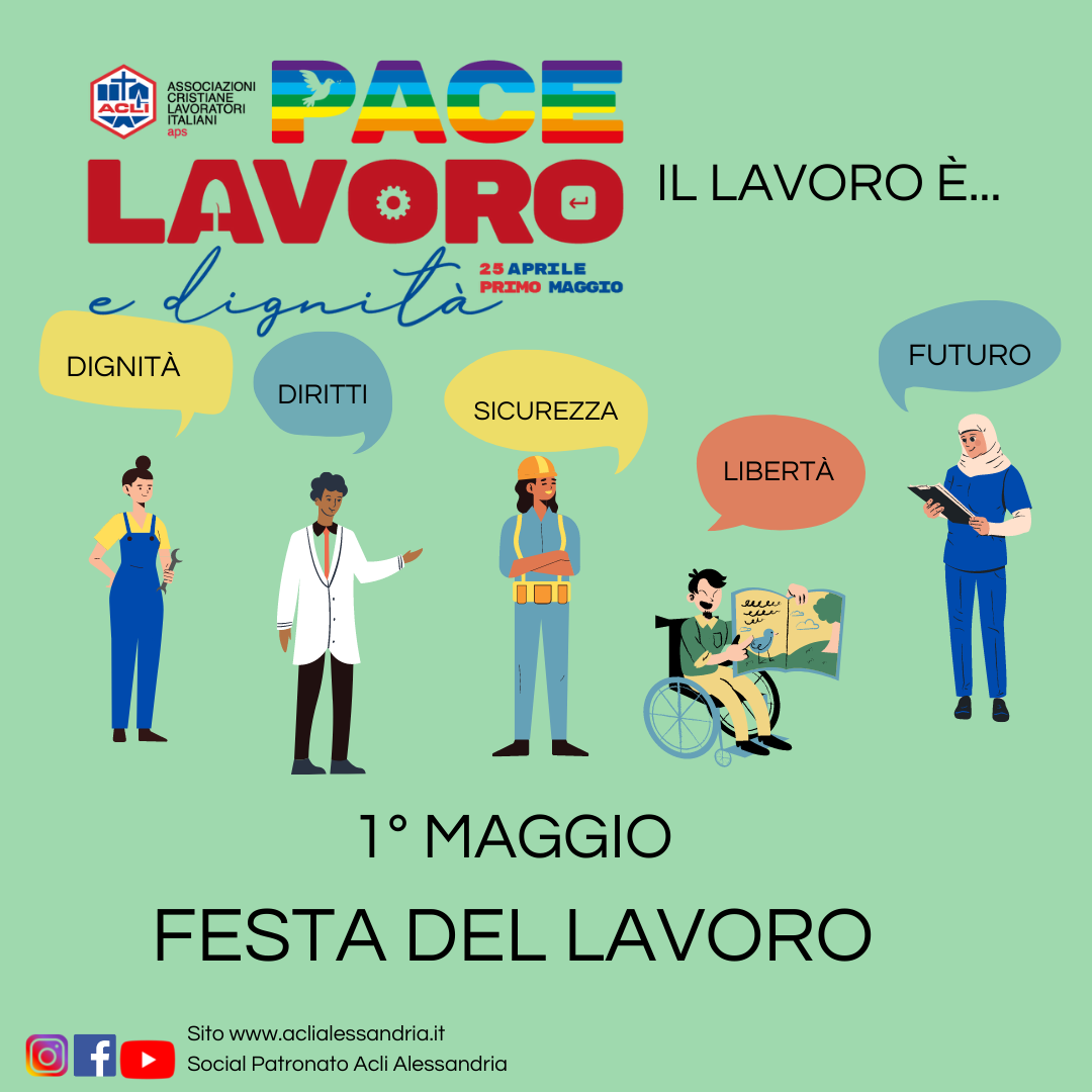 Pace. Lavoro e Dignità: Verso un Primo Maggio all’insegna della pace, dei diritti dei lavoratori e di dignità. Per ciascuno di questi valori come ACLI abbiamo lavorato a una serie di proposte e contributi, liberamente consultabile al seguente link