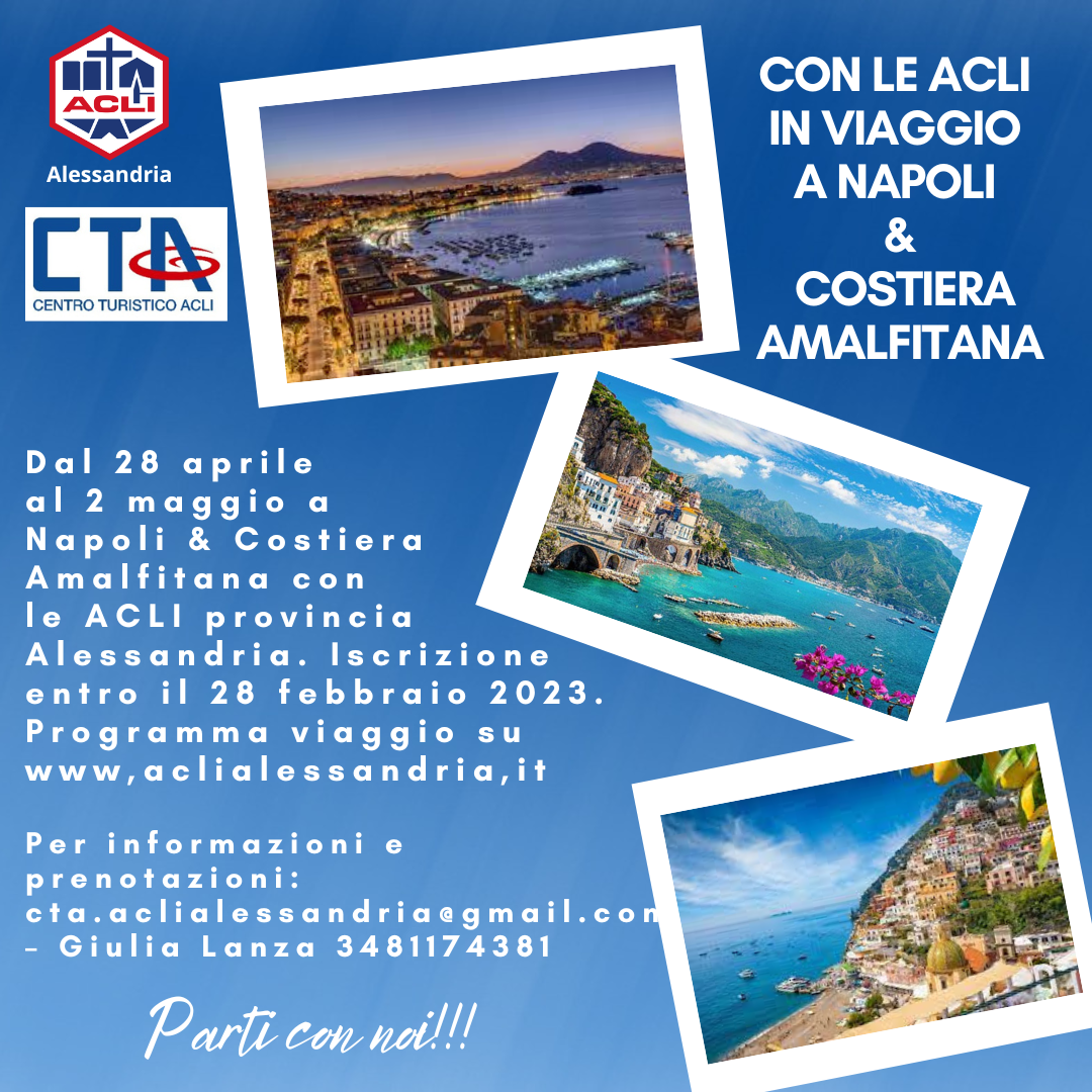 Dal 28 aprile al 2 maggio vieni con le ACLI provincia Alessandria aps a visitare Napoli & Costiera Amalfitana C’è tempo per iscriversi fino al 28 febbraio 2023.