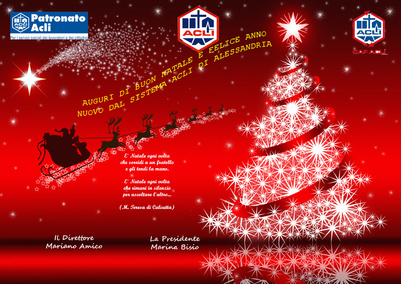 Il Sistema ACLI, il Patronato ACLI e il CAF ACLI della provincia di Alessandria augurano a tutte e tutti voi un Buon Natale e Felice Anno Nuovo!
