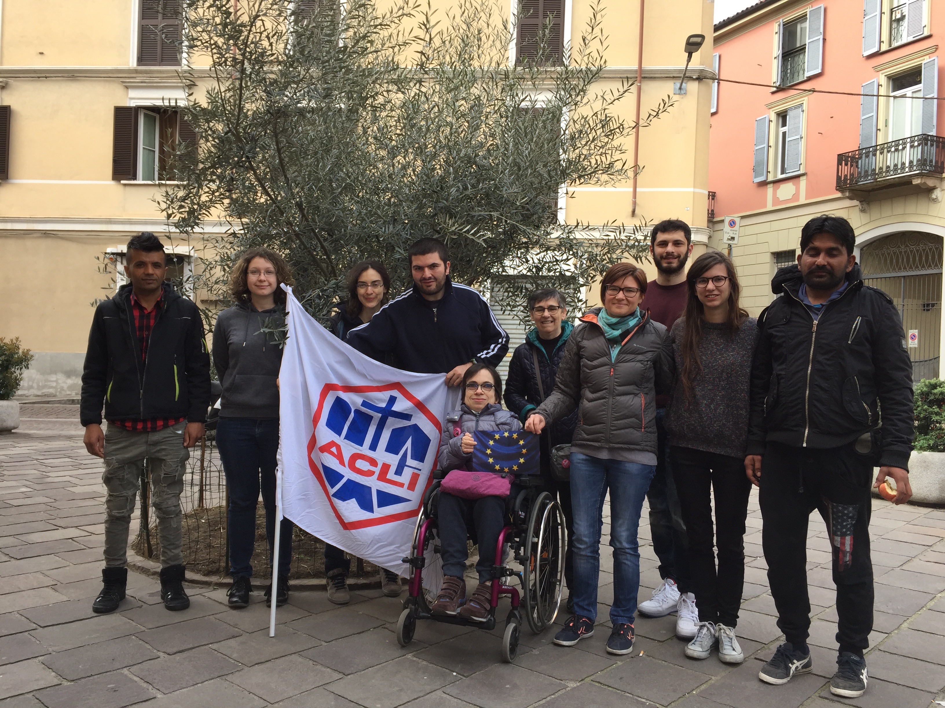 Anche le ACLI di Alessandria hanno deciso di aderire alla mobilitazione scattando questa foto in piazza Monserrato dove vi è piantato un ulivo. Questo albero, posto nel cuore più antico della città di Alessandria, resistente da secoli in questo luogo, è simbolo della convivenza tra popoli e culture diverse che qui si incontrano quotidianamente e auspicio di pace. Chiediamo tutti e tutte insieme #piùeuropa