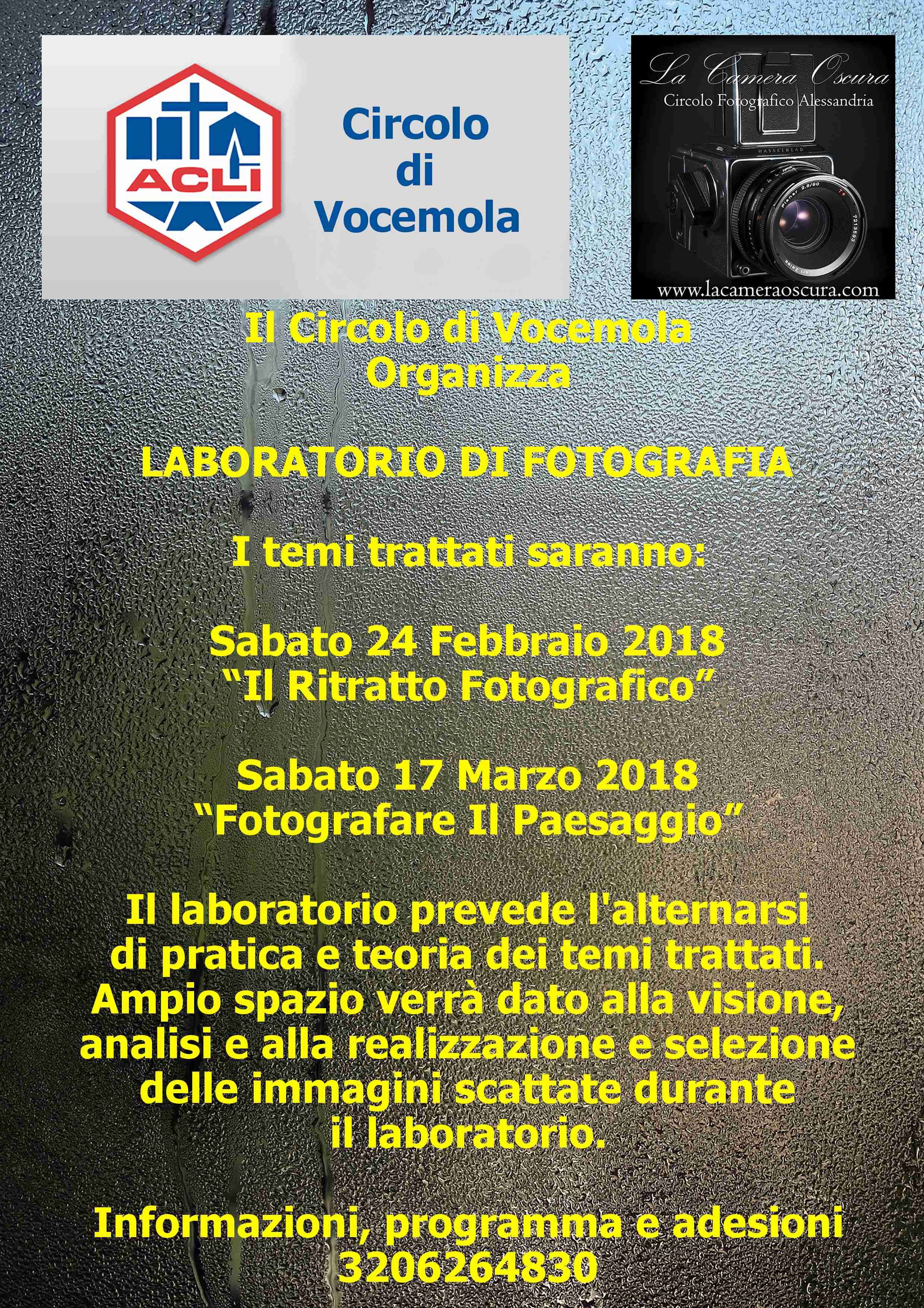 Il Circolo ACLI di Vocemola (via Oratorio, 1 – 15061 Arquata Scrivia) nell’ambito delle iniziative culturali a supporto delle proprie attività, in collaborazione con il Circolo Fotografico “La Camera Oscura” di Alessandria, organizza un LABORATORIO DI FOTOGRAFIA i cui temi trattati saranno: