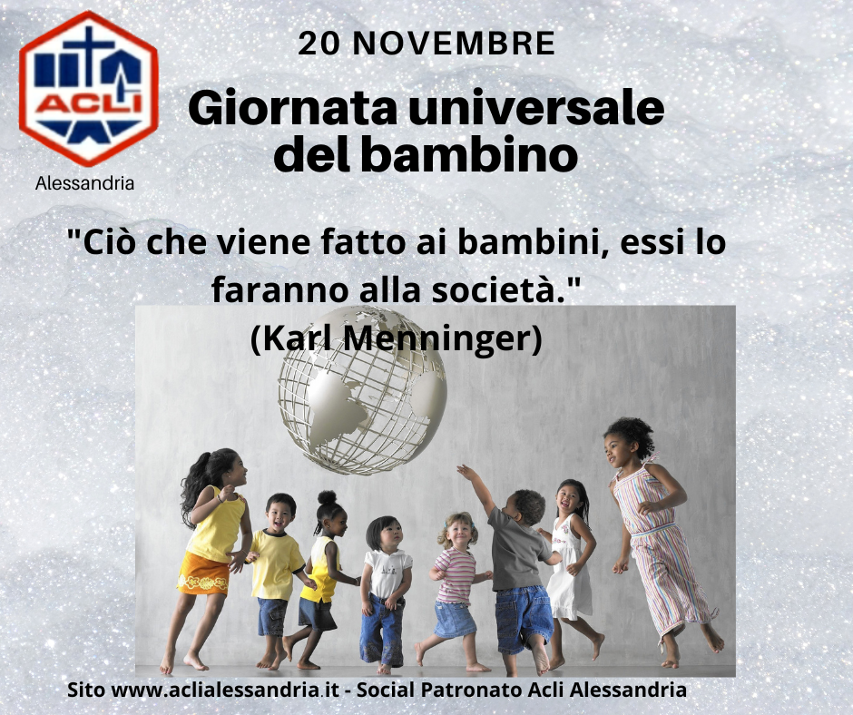 Come ACLI provincia Alessandria vogliamo portare la vostra attenzione sulla giornata di oggi che è la Giornata universale del bambino in quanto ci sono ancora molte situazioni in cui i bambini non possono “essere bambini”. Pensiamo solo ai bambini che attraversano il mare Mediterraneo, i bambini in Ucraina, i bambini sulla rotta balcanica, i bambini in Afghanistan. Come dice Karl Menninger “Ciò che viene fatto ai bambini. Essi lo faranno alla società”.