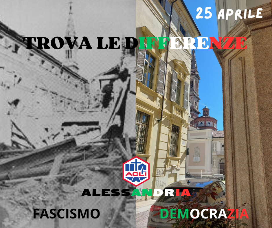 In foto via Gagliaudo e cortile interno dell’asilo infantile Maria Ausiliatrice ad Alessandria durante i bombardamenti del 1945 e come si presentano oggi.