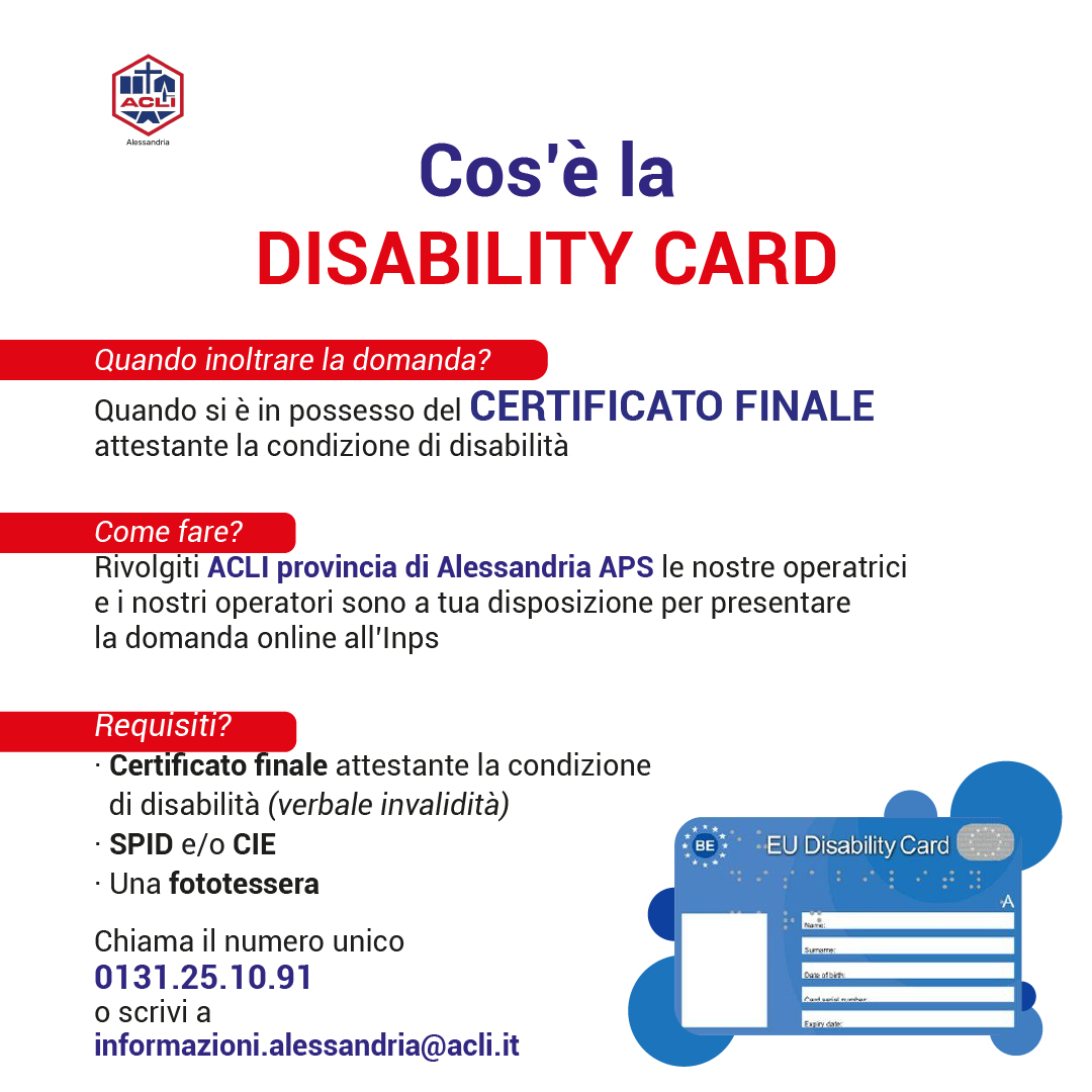 Per ulteriori domande puoi chiamare il numero unico delle ACLI provincia Alessandria aps 0131.25.10.91 per fissare un appuntamento con le nostre operatrici dello sportello dis-ABILITA’ InformAzioniAccessibili