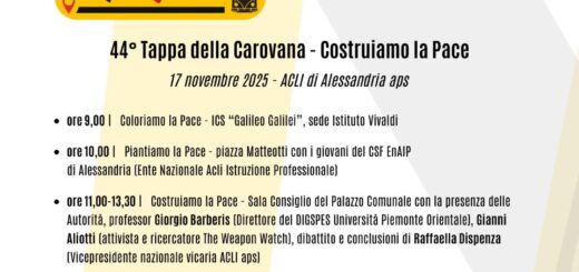 17 novembre, ad Alessandria la 44° tappa della Carovana “Peace At Work – Il lavoro costruiscela pace” “Siamo davvero felici di ospitare la carovana “Peace At Work – Il lavoro costruisce la pace”, promossadalle ACLI nazionali. Stiamo attraversando un momento complesso della storia perché le guerre condizionano la vita di ogni singolo, anche di un territorio di Alessandria – ha dichiarato Carlo Camurati, Presidente ACLI di Alessandria aps – Ecco...